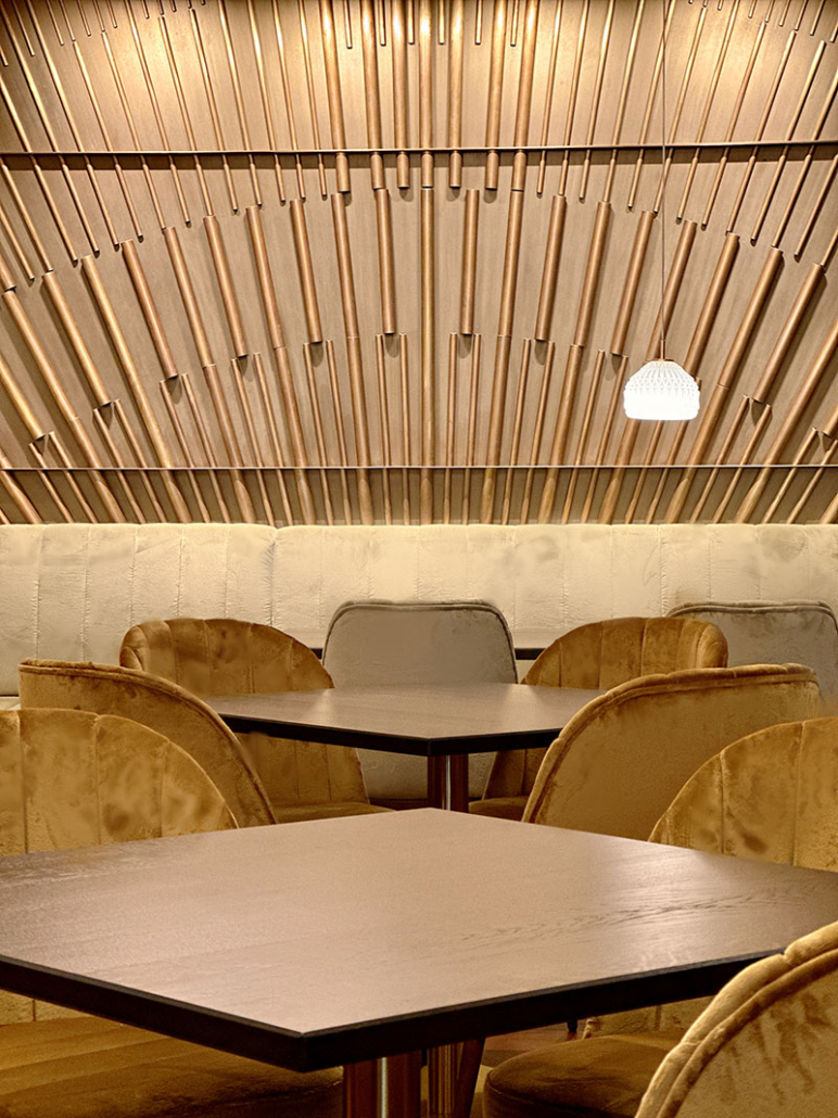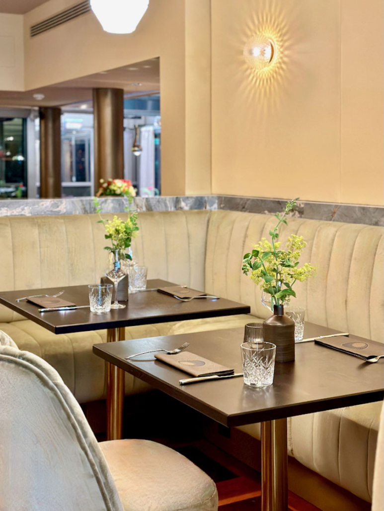 Das Restaurant und die Bar strahlen mit einer „Reduzierte Opulenz“ ohne dabei aufdringlich zu sein.
